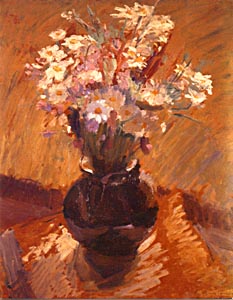 But the synthesis of the Byzantine tradition with modern Greek painting occurred with Photis Kontoglou and influenced his disciples, the surrealist Nikos Engonopoulos and Yannis Tsarouchis, each of whom developed a personal idiom. A different artistic idiom, comprising the concepts of Cubism, was introduced by Nikos Chatzikyriakos-Ghikas, while similar influences can be traced in Kostas Plakotaris and Gerasimos Steris. The most important representative of Expressionism in Greece is Yorgos Bouzianis who experienced the post-war developments in Germany and endeavoured to convey man's existential agony. Next to him, from the point of view of influence, we find Mimis Vitsoris and Yannis Mitarakis, while Yorgos Gounaropoulos, with his symbolic dreamy landscapes, is difficult to class in any school. To this period belongs the work of Diamantis Diamantopoulos while simultaneouslyYannis Moralis is beginning his artistic career.