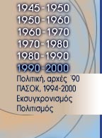 Στην τελευταία αυτή δεκαετία του 20ού αιώνα ο κόσμος όλος -και μαζί του και η Ελλάδα- συγκλονίστηκε από ραγδαίες αλλαγές στην πολιτική, την κοινωνία και την οικονομία. Η άρση του Ψυχρού Πολέμου, η πορεία ολοκλήρωσης της ευρωπαϊκής ενοποίησης και οι πολιτικοϊδεολογικές συγκλίσεις που συνέβησαν διαμόρφωσαν τα νέα περιβάλλοντα στα οποία εισήλθε η χώρα στην εποχή της παγκοσμιοποίησης. Τα ζητήματα του εκσυγχρονισμού του κράτους, της θέσης της χώρας σε ένα διαρκώς μεταβαλλόμενο κόσμο αλλά και του προσδιορισμού της εθνικής ταυτότητας αποτελούν τα ανοιχτά διακυβεύματα που αντιμετωπίζει η χώρα στην αυγή του 21ου αιώνα.