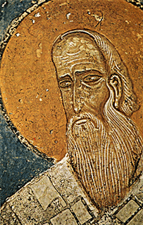 After the conquest of Athens by the Franks, the metropolitan of Athens Michael Choniates preferred to leave his country. On the picture, detail from a wall painting of Saint Peter at Kalyvia Kouvara in Attica depicting Michael Choniates.
