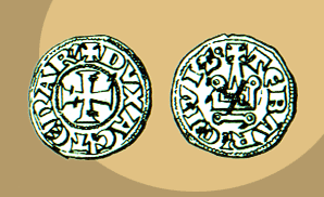 Guy II de la Roche had issued three series of coins, in order to meet the commercial needs of the duchy. On the picture, silver and gold tornesio of Guy (1287-1308).