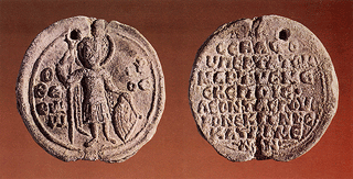 The marquisate of Bodonitsa was ceded by the Latin king to Guy Pallavicini as a fief, in order for the latter to reinforce the defence of his territories against those of Leo Sgouros. On the picture, molybdobull of Leo Sgouros.