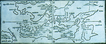 During the Latin occupation, Euboea was a transit station. On the picture, map of Euboea. 16th century.