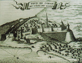 είχαν κρατήσει μόνο τη Μεθώνη και την Κορώνη. Στην εικόνα, χαλκογραφία