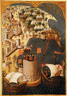 μικρογραφία της πολιορκίας της πόλης της Ρόδου (1480) από τους Τούρκους.