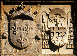 καταλύματα στην πόλη. Στην εικόνα, μαρμάρινα ανάγλυφα οικόσημα εντοιχισμένα