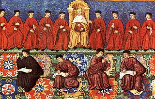 Στην εικόνα, το Συμβούλιο των Δέκα της Βενετίας σε παράσταση χειρογράφου.