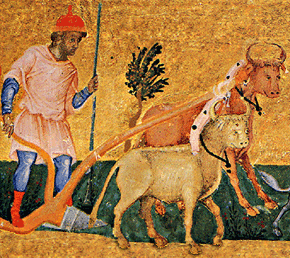 Στην εικόνα, παράσταση γεωργού. Μικρογραφία από Τυπικό. 1349.