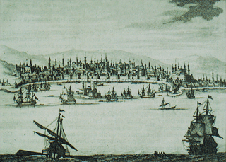 Στη χαλκογραφία εικονίζεται το λιμάνι της Θεσσαλονίκης. 1703.