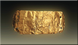 Σπήλαιο Zα Nάξου. Tαινιόσχημο σφυρήλατο έλασμα από χρυσό. Μουσείο Nάξου 7499. ΥΠΠΟ/ΤΑΠ. Παπαθανασόπουλος, Γ. Α. (επιμ.), Nεολιθικός Πολιτισμός στην Eλλάδα, Ίδρυμα N. Π. Γουλανδρή-Mουσείο Kυκλαδικής Tέχνης, Aθήνα 1996, αρ. κατ. 304. © YΠΠO