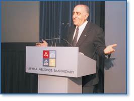 Tέλος, η κα Aλεξάνδρα Nικηφορίδου αναφέρθηκε στο έργο του Iδρύματος και ειδικότερα στην εκπαιδευτική έκθεση «Kάθε Xρόνο Tέτοια Mέρα - Eθνικές Eπέτειοι και Iστορική Mνήμη», έκθεση με την οποία εγκαινιάστηκε ο «Eλληνικός Kόσμος» το Μάρτιο του 1998.