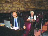 Στις 23 Ιουνίου 2004 το Ίδρυμα Μείζονος Ελληνισμού παρουσίασε στην αίθουσα της Γερουσίας της Βουλής, μετά από πρόσκληση της Ειδικής Μόνιμης Επιτροπής Απόδημου Ελληνισμού, το έργο και τις δραστηριότητές του. Αξίζει να σημειωθεί η παρουσία βουλευτών όλων των κομματικών παρατάξεων, οι οποίοι παρακολούθησαν με ιδιαίτερο ενδιαφέρον την ωριαία παρουσίαση. Στη συνεδρίαση συμμετείχαν και ομογενείς δημοσιογράφοι από τις ΗΠΑ και την Ευρώπη, οι οποίοι με τα σχόλιά τους έδωσαν την εικόνα του Ελληνισμού που ζει και δημιουργεί εκτός Ελλάδας. Η παρουσίαση ξεκίνησε με το θερμότατο καλωσόρισμα του Προέδρου της Επιτροπής Βουλευτή κ. Ευγένιου Χαϊτίδη προς τους εκπροσώπους του Ιδρύματος. Στη συνέχεια, το λόγο πήρε ο Πρόεδρος του ΙΜΕ κ. Λάζαρος Εφραίμογλου. Στο σύντομο λόγο του ο Πρόεδρος αναφέρθηκε στο όραμα και τις δυνατότητες του ΙΜΕ και, ευχαριστώντας για την τιμητική πρόσκληση της Βουλής, κάλεσε τους βουλευτές δε διάλογο, ώστε να προκύψει μια δημιουργική συνεργασία με ουσιαστικά αποτελέσματα για τον Απόδημο Ελληνισμό. Στη συνέχεια, ο Διευθύνων Σύμβουλος του Ιδρύματος κ. Δημήτρης Εφραίμογλου, στην ομιλία του, παρουσίασε την πορεία του Πολιτιστικού Κέντρου «Ελληνικός Κόσμος», αλλά και το πλούσιο πολιτιστικό και εκπαιδευτικό υλικό που είναι διαθέσιμο σε όλους τους Έλληνες, εντός και εκτός συνόρων, μέσω των νέων τεχνολογιών. Επίσης, έκανε αναφορά στους κόμβους του Ιδρύματος στο Διαδίκτυο, πλούσιους σε περιεχόμενο και οπτικό υλικό, και στον τρόπο με τον οποίο αυτοί αποτελούν εκπαιδευτικά εργαλεία για Έλληνες και ξένους σε όλο τον κόσμο. Επιπλέον, μίλησε για τη δημιουργία εποπτικού υλικού, ουσιαστικού και κατάλληλου στη χρήση και εμπλουτισμό των μαθητικών βιβλιοθηκών -παραδοσιακών και μη- στα ελληνικά σχολεία, όπου βρίσκεται και ανθεί το ελληνικό στοιχείο. Στο πλαίσιο αυτό, παρουσιάστηκαν εκτενώς οι διαδραστικοί δίσκοι (CD-ROM) του ΙΜΕ με τίτλο «Μονοπάτι στης Γνώσης - Προορισμός Ελληνική Ιστορία». Η πλούσια αυτή σειρά, η οποία απευθύνεται σε μικρούς και μεγάλους, είναι ένα εξαιρετικό μέσο προσέγγισης της ελληνικής ιστορίας με τρόπο εύληπτο και διασκεδαστικό. Με δυνατότητα διάθσης στα ελληνικά και τα αγγλικά, με περισσότερες από 1.700 ερωτήσεις, με ενσωματωμένη πλήρη εγκυκλοπαίδεια της ελληνικής ιστορίας και διαφορετικά επίπεδα δυσκολίας στις ερωτήσεις και τις δραστηριότητες, το «Μονοπάτι της Γνώσης» ξεκινά την περιήγηση από τους χρόνους του Λίθου και φτάνει έως τη σύγχρονη ελληνική ιστορία. Στην ίδια εκπαιδευτική λογική έχει ολοκληρωθεί μία ακόμη έκδοση του «Μονοπατιού» με υλικό από τους αρχαίους και σύγχρονους Ολυμπιακούς Αγώνες. |