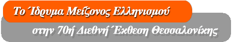 Το Ίδρυμα Mείζονος Eλληνισμού συμμετείχε και φέτος στην 70ή Διεθνή Έκθεση Θεσσαλονίκης από τις 10 έως τις 18 Σεπτεμβρίου 2005. Καινοτομία της φετινής συμμετοχής αποτέλεσε ο «Εικονικός Κινηματογράφος», το νέο εντυπωσιακό σύστημα Εικονικής Πραγματικότητας του ΙΜΕ, το οποίο με ελεύθερες προβολές έδινε τη δυνατότητα στο κοινό της ΔΕΘ, για πρώτη φορά στην ιστορία της έκθεσης, να «μεταφερθεί» στον ιερό χώρο της αρχαίας Ολυμπίας και να πάρει μια πρώτη γεύση των εικονικών περιηγήσεων, όπως προβάλλονται στον «Ελληνικό Κόσμο». |