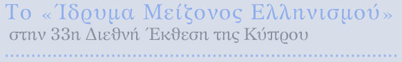 Το Ίδρυμα Μείζονος Ελληνισμού φιλοξενήθηκε από τον Ελληνικό Οργανισμό Εξωτερικού Εμπορίου στην 33η Διεθνή Έκθεση της Κύπρου, η οποία διοργανώθηκε από τις 23 Μαΐου έως και την 1η Ιουνίου στον εκθεσιακό χώρο Expo Cyprus στη Λευκωσία.