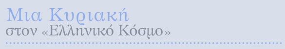 O «Ελληνικός Κόσμος» γίνεται τόπος συνάντησης μικρών και μεγάλων τα πρωινά της Κυριακής. Γονείς με παιδάκια, από την ηλικία των νηπίων ακόμη, έχουν τη δυνατότητα να περάσουν πολύ ευχάριστα και εποικοδομητικά το χρόνο τους παρακολουθώντας ποικίλες δραστηριότητες.