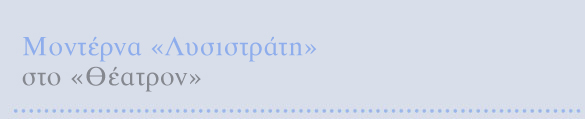 Η «Λυσιστράτη» του Αριστοφάνη, η καλοκαιρινή επιτυχία του Εθνικού Θεάτρου, που γέμισε ασφυκτικά το αρχαίο θέατρο της Επιδαύρου, μεταφέρθηκε για είκοσι παραστάσεις στο «ΘΕΑΤΡΟΝ» του «Ελληνικού Κόσμου». Το έργο, το οποίο γράφτηκε το 411 π.Χ., μέσα στα δεινά του Πελοποννησιακού πολέμου, αποτελεί έναν αντιπολεμικό ύμνο ...αλλά και ένα σχόλιο πάνω στη σχέση-πόλεμο των δύο φύλων!