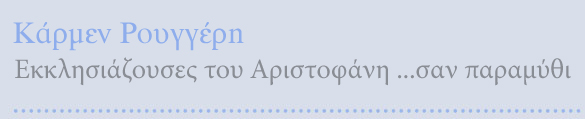 ΤΟ ΣΥΝΑΡΠΑΣΤΙΚΟ ΤΑΞΙΔΙ ΣΤΟΝ ΚΟΣΜΟ ΤΟΥ ΠΑΙΔΙΚΟΥ ΘΕΑΤΡΟΥ, ΜΕ ΑΡΙΣΤΟΥΡΓΗΜΑΤΑ ΤΗΣ ΑΡΧΑΙΑΣ ΕΛΛΗΝΙΚΗΣ ΓΡΑΜΜΑΤΕΙΑΣ, ΣΥΝΕΧΙΖΕΤΑΙ ΣΤΟΝ «ΕΛΛΗΝΙΚΟ ΚΟΣΜΟ». Μετά τις επιτυχημένες παραστάσεις της «Οδύσσειας» και της «Ιλιάδας», που κέρδισαν το παιδικό κοινό, επόμενος σταθμός είναι ο Αριστοφάνης. Ο μεγαλύτερος κωμωδιογράφος όλων των εποχών έρχεται στο «ΘΕΑΤΡΟΝ» με τις «Εκκλησιάζουσες», σε μια παράσταση... σαν παραμύθι! Οι θάλασσες και τα καράβια δίνουν τη θέση τους σε κουκλίστικα σπιτάκια. Το πεδίο της μάχης από την Τροία μεταφέρεται στις όμορφες γειτονιές της Αθήνας. Πρωταγωνίστριες τώρα πια είναι οι γυναίκες, οι οποίες -ντυμένες σαν άντρες με πολύχρωμα, παραμυθένια κουστούμια- πηγαίνουν κρατώντας αναμμένα τα φαναράκια τους στην Εκκλησία του Δήμου.