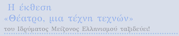 Η έκθεση του Ιδρύματος Μείζονος Ελληνισμού «Θέατρο, μία τέχνη τεχνών» συνεχίζει, με τη χορηγία του ομίλου Eurobank EFG, και την περίοδο 2011-2012 το ταξίδι της σε επιλεγμένα σημεία σε όλη την Ελλάδα.