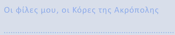 Η συγγραφέας και παιδαγωγός κυρία Σοφία Γιαλουράκη, που έχει αφιερώσει τη ζωή της στην υπηρεσία της εκπαίδευσης και της τέχνης, αλλά και στη μεταξύ τους δημιουργική ώσμωση και συνύπαρξη, ζωντανεύει στο βιβλίο της αυτό τις 24 αρχαϊκές Κόρες της Ακρόπολης. Αυτές «πρωταγωνιστούν» μαζί με τη βασική ηρωίδα, μια νεαρή κοπέλα που έρχεται στην Αθήνα γεμάτη όνειρα για να κερδίσει τη ζωή της. Γίνονται η συντροφιά της, το καταφύγιό της, η χαρά της. Γίνονται ο καθρέφτης της ζωής της. Δεν είναι πια άψυχα αγάλματα, ζωντανεύουν, αποκτούν φωνή και μιλούν, παίρνουν σάρκα και οστά.