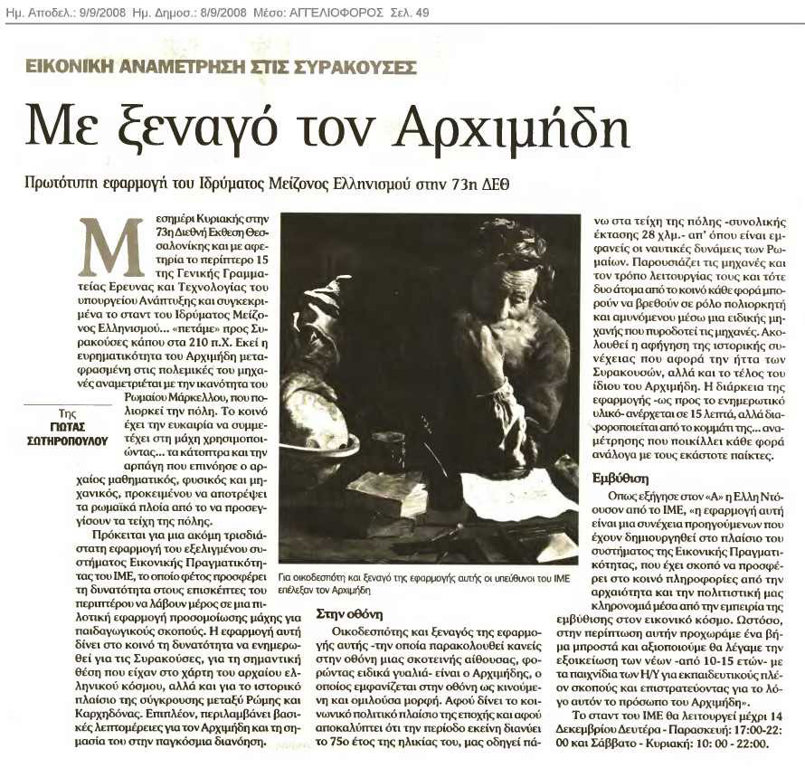 'Αρθρο στην εφημερίδα «ΚΑΘΗΜΕΡΙΝΗ»