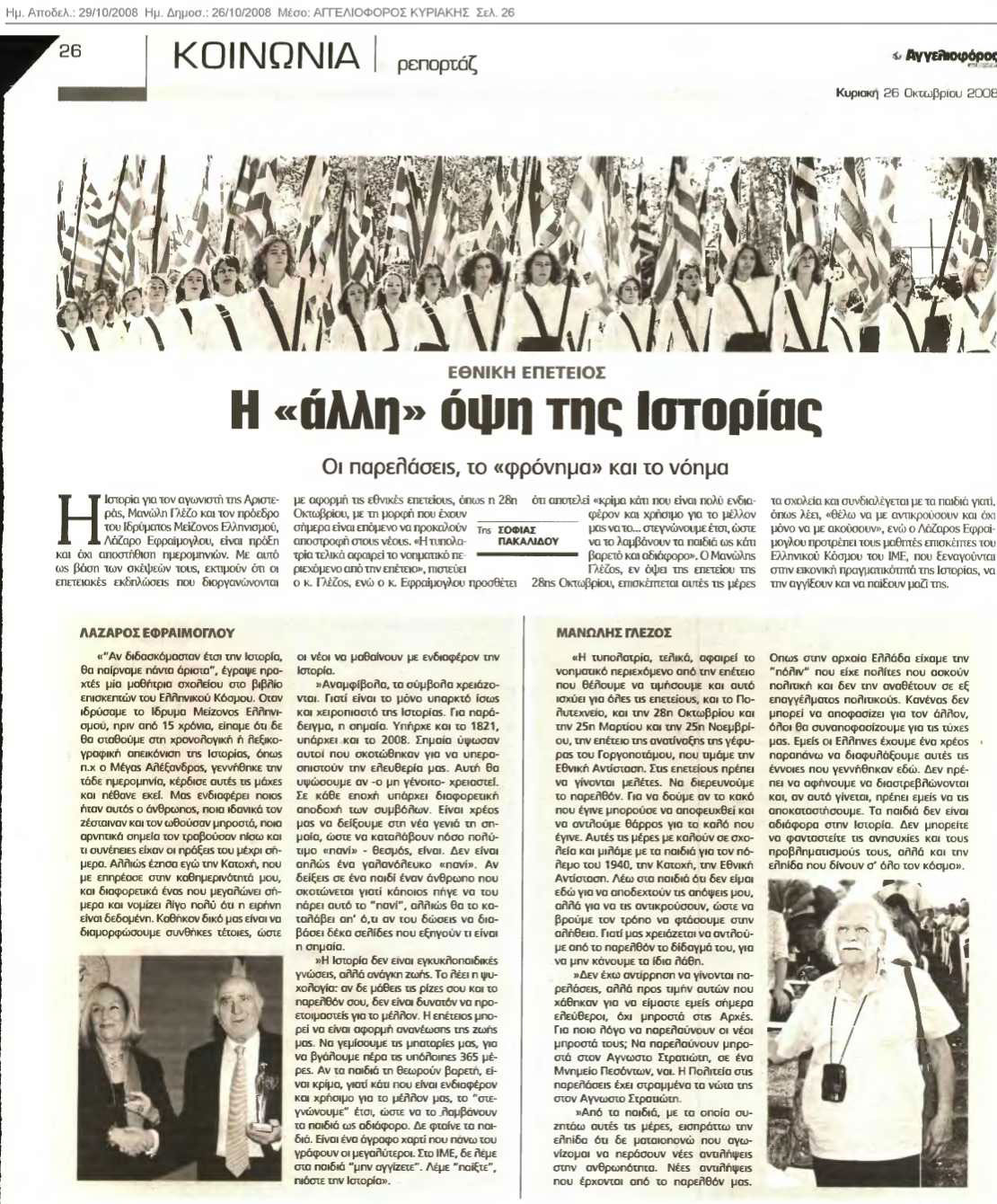 'Αρθρο στην εφημερίδα «Αγγελιοφόρος Κυριακής»