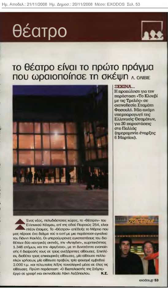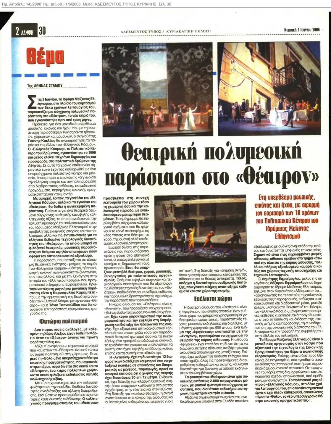 'Αρθρο στο ένθετο «Εικόνες» της εφημερίδας «Έθνος Κυριακής»