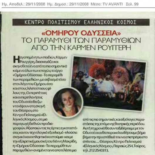 'Aρθρο στο περιοδικό "TV AVANTI"