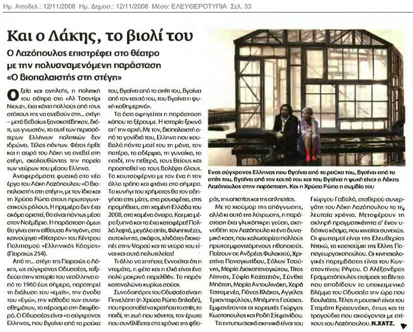 'Αρθρο στην εφημερίδα «Ελευθεροτυπία»