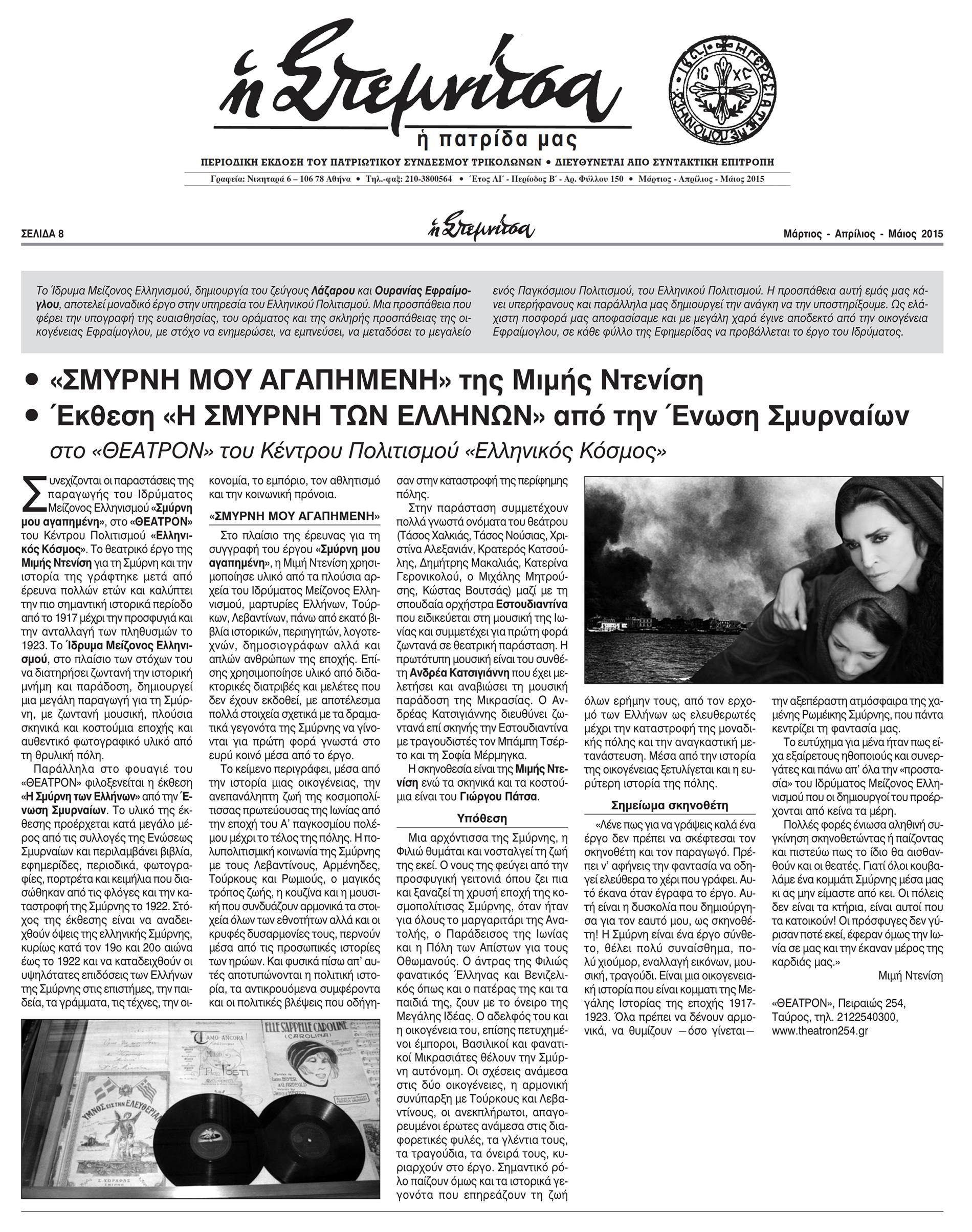 «Σμύρνη μου αγαπημένη» της Μιμής Ντενίση. Έκθεση «Η Σμύρνη των Ελλήνων» από την Ένωση Σμυρναίων.