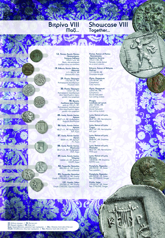 The existence of political / economic alliances, which in the Roman era were mainly of a religious character, is evidenced by coinage. This occurs because the members of the alliance issued coins, either in the city of the koinon (federation) or in various mints, with a common face value, i.e. with the same standards (weight) and types (iconography). Sometimes the alliance is not mentioned in the sources. The coins of each minting authority can be distinguished by the name of the city, its symbols and the names of the archons who were responsible for the minting.