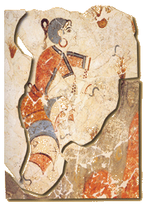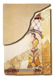 Το γυναικείο ένδυμα αποτελούνταν από το περικόρμιο, που είχε κοντά μανίκια και έκλεινε μπροστά αφήνοντας συχνά γυμνό το στήθος, και από μια μακριά φούστα φτιαγμένη από υφασμάτινες ταινίες σε διάφορα μήκη. Συχνή ήταν η χρήση της ποδιάς πάνω από τη φούστα. Τα πιο πολυτελή ενδύματα ήταν διακοσμημένα με πολύχρωμες τρέσες, χάντρες και μεταλλικά φύλλα. Το γυναικείο αυτό σύνολο φαίνεται ότι ήταν εμπνευσμένο από τα ιερατικά άμφια της Ανατολής.