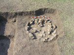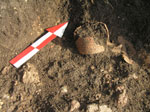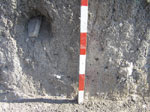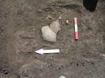 Potsherd of a vessel and traces of coal in the section of the pit that disturbed the Neolithic stratum.