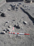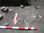 Στο αμέσως κατώτερο στρώμα εντοπίστηκαν κατά σημεία νεολιθικά ευρήματα, συχνά διαταραγμένα από τους λάκκους της Ελληνιστικής περιόδου. Τέλος, στα βορειοανατολικά του τομέα άρχισε –και συνεχίζεται ακόμα– η διερεύνηση απιόσχημου λάκκου, στον οποίο έχει εναποτεθεί κεραμική και στα ανώτερα στρώματα τεράστιες μάζες πηλού.
