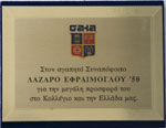 Την Τετάρτη 5 Δεκεμβρίου 2001 ο «Ελληνικός Κόσμος» φιλοξένησε στους χώρους του το Σύλλογο Αποφοίτων του Αμερικανικού Κολλεγίου Ελλάδος. Σκοπός της εκδήλωσης ήταν η απονομή τιμητικής διάκρισης από το Διοικητικό Συμβούλιο του Συλλόγου στον Πρόεδρο του Ιδρύματος Μείζονος Ελληνισμού κ. Λάζαρο Εφραίμογλου και στη Γενική Γραμματέα του Ιδρύματος και απόφοιτη του Pierce College κα Ουρανία Εφραίμογλου για την έμπνευση και δημιουργία του ΙΜΕ. Τους παρευρισκόμενους ενθουσίασε η παρουσίαση των έργων και προγραμμάτων του ΙΜΕ από το Διευθύνοντα Σύμβουλο κ. Δημήτρη Εφραίμογλου. Επίσης, συγκίνηση προκάλεσε η ομιλία της κας Oυρανίας Εφραίμογλου, την οποία εκφώνησε ως ανταπάντηση στην απονομή Τιμητικής Διάκρισης από την Πρόεδρο του Σ.Α.Α.Κ.Ε. Δρ Καίτη Δασίου.
