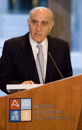 Σημαντικότερο έργο του -έργο ζωής- το Ίδρυμα Μείζονος Ελληνισμού, το οποίο ίδρυσε το 1993 μαζί με την οικογένειά του, τη σύζυγό του Ουρανία και το γιο του Δημήτρη, με αρχική δωρεά το μεγαλύτερο μέρος της περιουσίας του. Το όραμά του για τη δημιουργία ενός χώρου που θα αναπαριστάνεται με σύγχρονα τεχνολογικά μέσα, η ιστορική πορεία του Ελληνισμού, το υλοποίησε με όλες του τις δυνάμεις και το υπηρέτησε με πάθος μέχρι το τέλος της ζωής του...