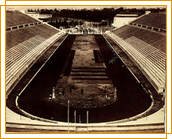 "The decoration of the Stadium is exceptional. At the entrance very tall masts have been erected and on them standards and coat-of-arms are hung, and on each side a replica of ancient tripods. All around close to the marble parapet are poles with coat-of-arms, while close to the sphendone the two ancient stone Hermes heads which we found during the excavations of the ancient track have been set up."