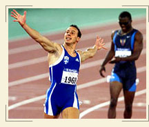 - The Greek Katerina Thanou finished second in the 100m final. Thanou, who ranked third in the world championship of 1999 and 2001, was the second Greek presence that impressed in the sprints after the victory of Kostas Kenteris in the 200m. Until 1999 Kenteris specialized in the 400m, without having gained any remarkable distinction. A serious injury and a new trainer, the same who trains Thanou, brought him on the top of the Olympic victory stand in Sydney. After these Games he confirmed his predominance in the 200m by winning the gold medal in the 2001 world championship.