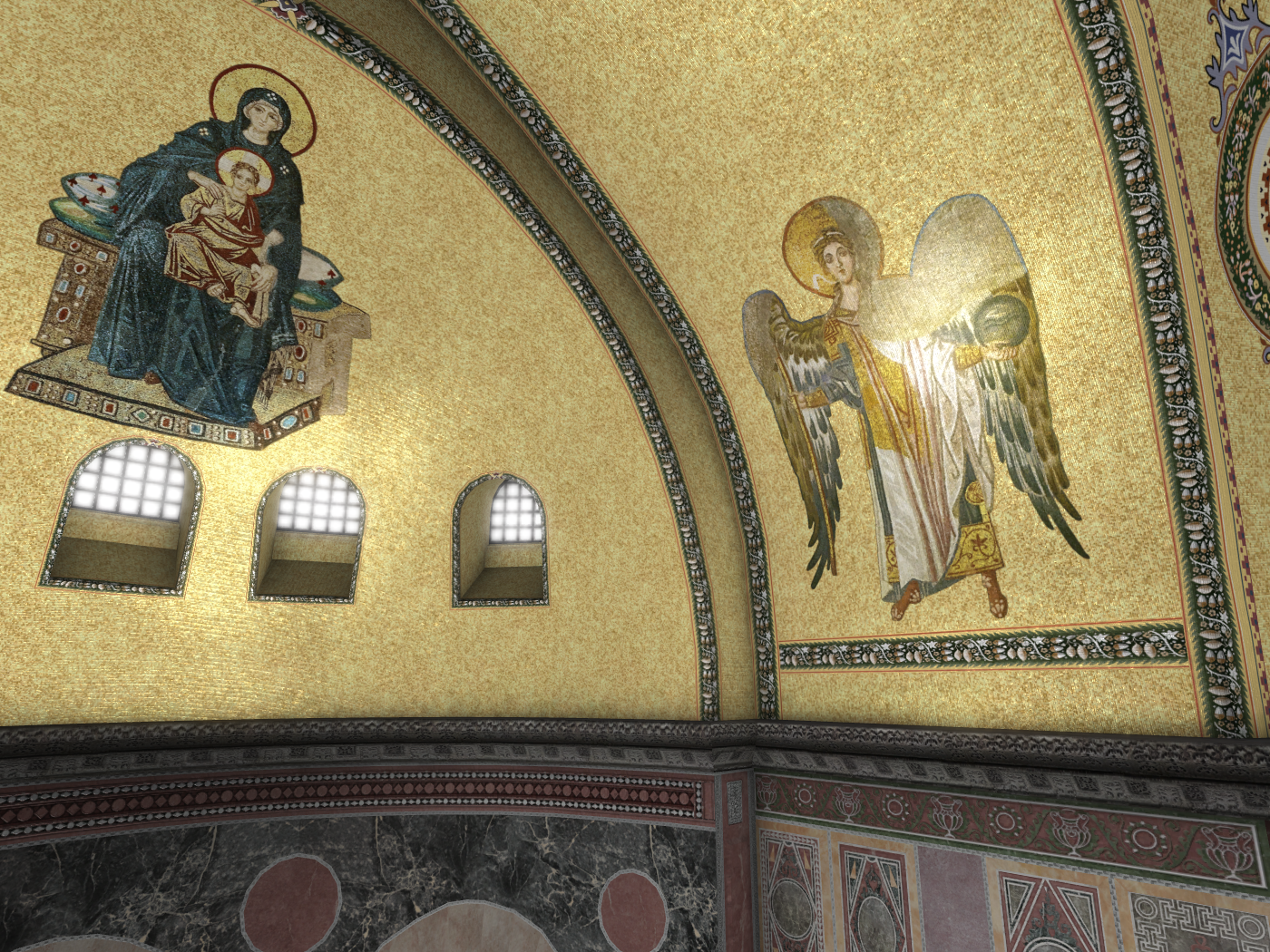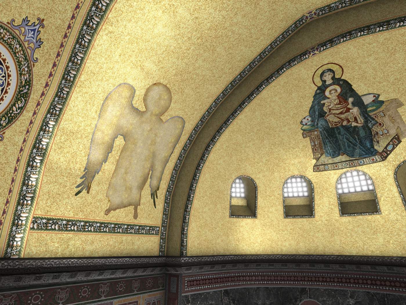 Αρχάγγελοι στο ανατολικό τόξο. Σώζεται καλλίτερα ο αρχάγγελος Γαβριήλ στα αριστερά της Θεοτόκου (εικόνα 45), ενώ από τον αρχάγγελο Μιχαήλ έχουν διασωθεί μόνο ελάχιστα τμήματα (εικόνα 46). Κατασκευάστηκαν συγχρόνως με την κεντρική παράσταση της Θεοτόκου στην αψίδα.