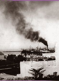 The torpedoing of the cruiser "Elli" by an Italian submarine at the port of Tinos. October 15, 1940.
