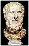 Στρεψιάδη και σε ένα μαθητή σχολής σοφιστών, στο έργο Νεφέλαι, 206-208: ΜΑΘΗΤΗΣ (Δείχνει τον χάρτη): Αυτή 'ναι η περίμετρος της γης.