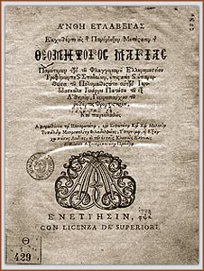 Στα 1708 οι μαθητές του Φλαγγινιανού Κολλεγίου εξέδωσαν μια ποιητική συλλογή σε αρχαία ελληνική, λατινική, ιταλική και νεοελληνική γλώσσα με κεντρικό θέμα την Κοίμηση της Θεοτόκου, η οποία ονομάστηκε "'Aνθη Ευλαβείας". Εδώ: Η σελίδα τίτλου της ποιητικής συλλογής "'Aνθη Ευλαβείας", 1708.