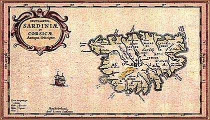 Κατά τα 1670 μανιάτες έποικοι μεταφέρονται στην Κορσική, μετά από συμφωνία με τους Γενουάτες. Εδώ: Χάρτης της Κορσικής, η οποία αποτέλεσε γενουάτικη κτήση ως τα 1768.
