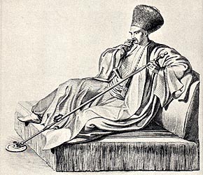 | Έλληνας άρχοντας των αρχών του 19ου αιώνα, 1825. Λιθογραφία. Stackelberg O. M. von, Costumes et Usages des peuples de la Grece Moderne, Rome 1825. Αθήνα, Συλλογή Κ.&Δ. Κούτσικα. |