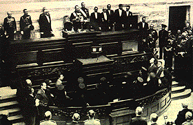 Το 1935 οι κοινοβουλευτικές λειτουργίες μεταφέρθηκαν από το κτίριο της πλατείας Κολοκοτρώνη, όπου είχαν στεγαστεί από τα μέσα
