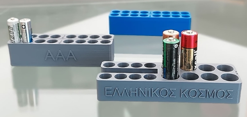 Τρισδιάστατη εκτύπωση βάσης αποθήκευσης για μπαταρίες τύπου ΑΑ και ΑΑΑ.