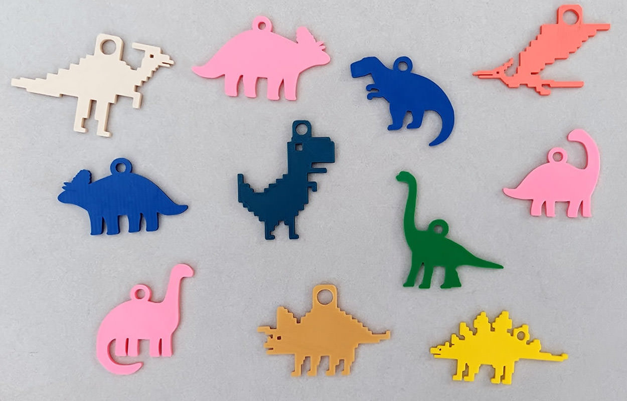 Τρισδιάστατη εκτύπωση μπρελόκ σε 10 διαφορετικά σχήματα δεινοσαύρων.